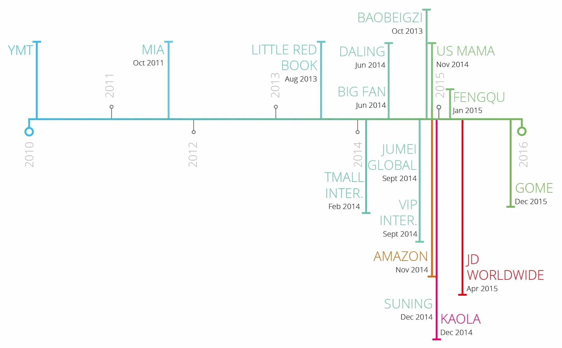 (on the right column) Kaola, Tmall Global, VIP International, JD Worldwide, YMT, Little Red Book, Mia, Other