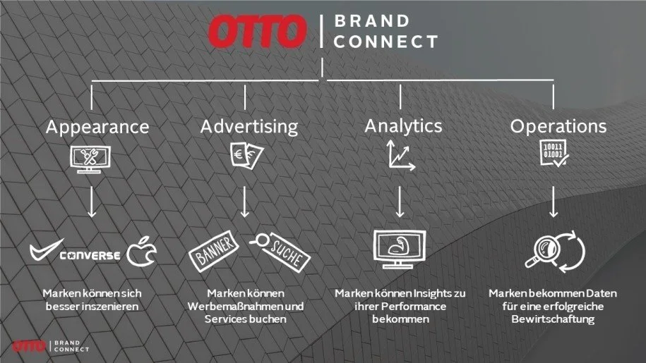 Once connected, OTTO provides different options for support in the areas of appearance, advertising, analytics and operations through their Brand Connect program.