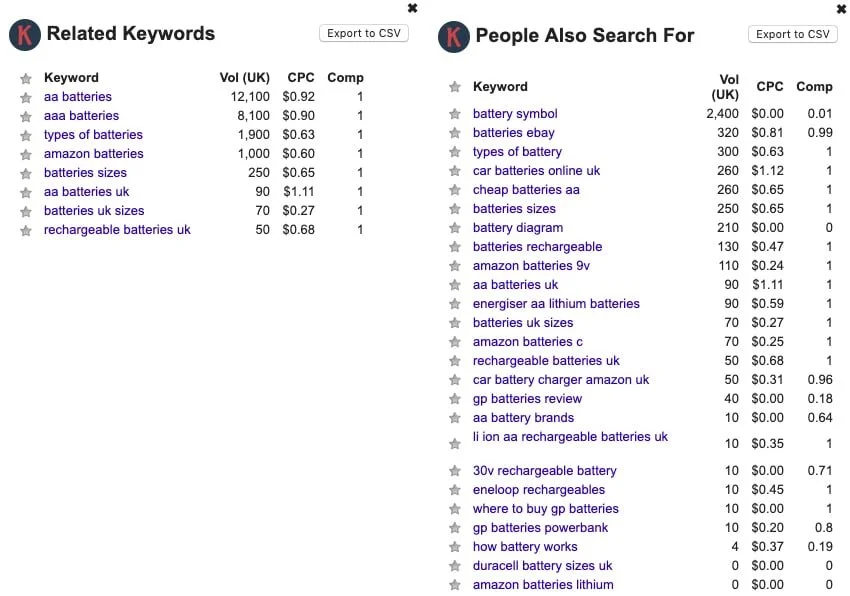 The example below when searching for word batteries. Note, that you can change the setting to a specific region to add more specificity and localise your results.